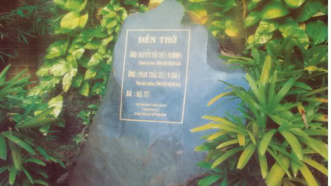 Ban thờ phía bên phải là ban thờ Má chiến sĩ - tức Má Tư cùng 3 chiến sĩ cũng hi sinh trong trận bom ngày 16-4-1969 với ông Nguyễn Tấn Thử. Ban thờ phía bên trái là ban thờ ông Phan Thái Quí (tức Chín Quí), tỉnh đội trưởng Tỉnh đội Kiên Giang - đồng đội của thân phụ thủ tướng - cũng hi sinh trong trận bom ngày 16-4-1969. Quan sát kỹ thêm tôi thấy ban chính phía trên nóc có một chùm đèn và dưới là một chiếc sập gỗ cũng quá đơn sơ mộc mạc. Hai bên phía hồi nhà thờ ngay lối cửa ra vào là 2 lọ lục bình lớn nom y hệt bằng đồng nhưng kỳ thực chỉ là 2 bình đất nung, sản vật của Vĩnh Long. Toàn bộ hệ thống cửa chính hoàn toàn là gỗ mộc, đã hư hỏng, xuống cấp. Quan sát hết lượt từ ngoài vào trong, từ trong ra ngoài tôi chẳng thấy có một vật dụng gì được cho là quý giá! Còn ở ngoài khuôn viên phía trước nhà thờ chỉ thấy toàn là cây cau, xoài, mít và vài cây đại nhỏ, không hề có một cây cảnh đắt tiền hay quý hiếm nào cả. Qua kiểm chứng, ngôi nhà thờ này được anh em trong gia đình thủ tướng xây dựng vào khoảng năm 2000.