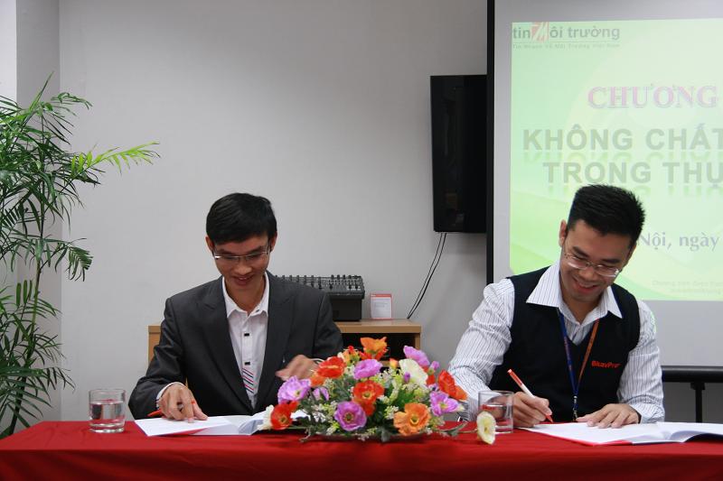 Tiếp đó, TS Bạch Thành Lê và ông Nguyễn Văn Chính, đại diện cho BGĐ Công ty BKAV và trang Tin môi trường đã ký biên bản ghi nhớ hợp tác chiến dịch.