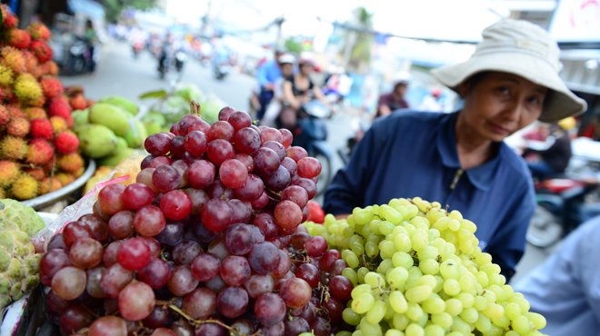 | Nho Trung Quốc được bày bán tại chợ Gò Vấp, TP.HCM chiều 18-9 - Ảnh: Thuận Thắng |
