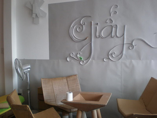 Ngay từ những bước chân đầu tiên vào quán, bạn sẽ cảm nhận được thiết kế và nguyên vật liệu cực kỳ thân thiện với môi trường của quán thông qua những dãy bàn ghế, bức vách, tường, rèm và cả những vật trang trí bé xinh hoàn toàn được làm bằng giấy.