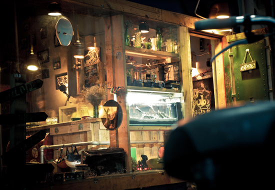 Ở Wild Pub, mọi thứ không tuân theo bất kỳ nghệ thuật hay thể loại nào, tất cả đơn giản là thô, mộc. Song nếu để ý một chút, bạn sẽ phát hiện, mọi vật trang trí trong quán đều có cùng một xuất phát điểm. Cụ thể tất cả đều là đồ cũ phải chịu khó lục tìm trong hàng trăm chỗ thu mua phế liệu mới gom về. Đó là những viên gạch cũ, những chiếc kệ của các thập niên trước, đĩa than hư, lò xo của một máy công nghiệp…Việc tận dụng vật liệu cũ, phế thải của quán không đơn giản mang đến nét lạ, phá cách cho quán mà còn là dụng ý bảo vệ môi trường của hai cô cậu chủ khá trẻ.