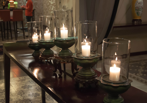 | Lan tỏa trong không gian là hương trầm quyến rũ và ánh sáng vàng lãng mạn từ nến cùng những ngọn đèn chùm. |