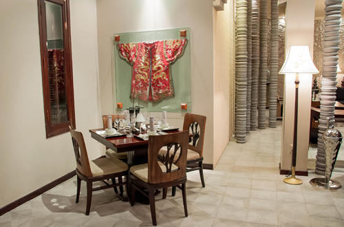 | Phòng ăn được trang hoàng tinh tế và tao nhã với những bộ bàn ghế được làm bằng gỗ quý. |