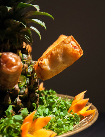Như quy tắc thường thấy của việc chế biến, nguyên liệu càng ngon và đặc biệt, thì chế biến lại càng phải đơn giản, ít nguyên phụ liệu gia vị đi kèm, chả giò vi cá cũng vậy. Ngay miếng cắn đầu tiên, bạn sẽ cảm nhận được hết hương thơm, cái giòn, cái sần sật của vi cá quấn quýt trên đầu lưỡi. Bên cạnh đó, đầu bếp cũng kỳ công trang trí bằng trái thơm tươi và ngọn nến cho ánh sáng vàng bên trong.