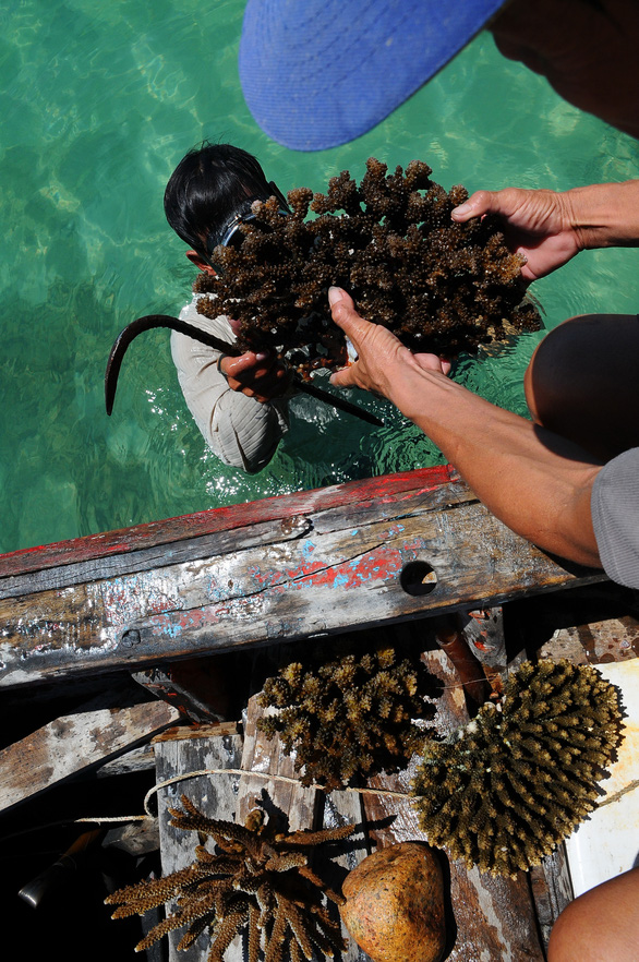 (10:04:54 AM 09/07/2020)Ngư dân ở Cam Lập, TP Cam Ranh khai thác san hô bán cho các tiệm cá cảnh - Ảnh: T.T.D.