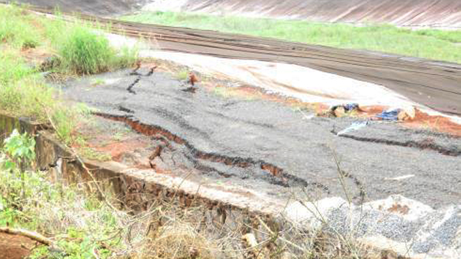 Sụt lún gần hồ bùn đỏ Nhà máy Alumin Nhân Cơ ngày một nghiêm trọng