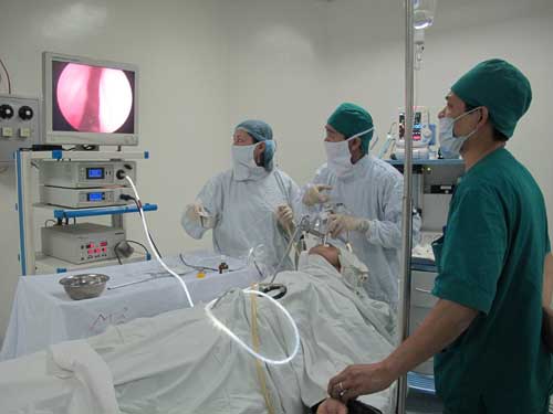 Tại đây, anh Thái được nội soi, và phát hiện có dị vật trong thanh quản, nghi đó là một con đỉa.