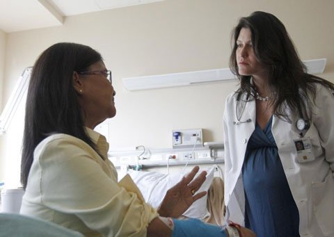 | Tiến sĩ Sarah K. Browne (phải) (thuộc Viện Dị ứng và các bệnh truyền nhiễm quốc gia Mỹ) đang trò chuyện với một bệnh nhân mắc căn bệnh lạ giống AIDS ngày 22/8 (Ảnh: AP) |