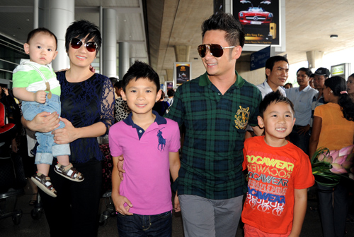 - Anh có thể chia sẻ đôi chút về ba cậu quý tử vừa đẹp trai và láu lỉnh của mình. Có cậu bé nào muốn theo nghiệp ca sĩ như bố mẹ?