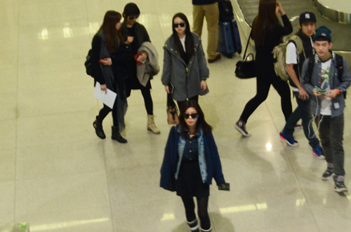 | Sau khi làm thủ tục nhập cảnh, 5 cô gái của nhóm nhanh chóng di chuyển ra cửa. |