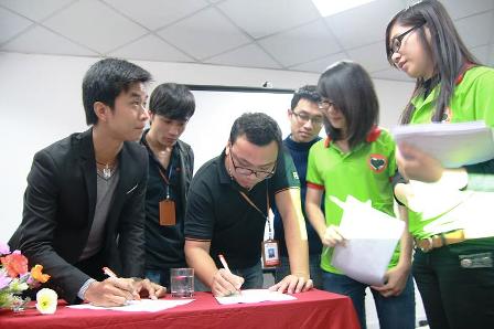 Nhân viên công ty Bkav Hà Nội ký ủng hộ Dự án " Khộng chất độc hại trong thực phẩm" của Tin Môi Trường