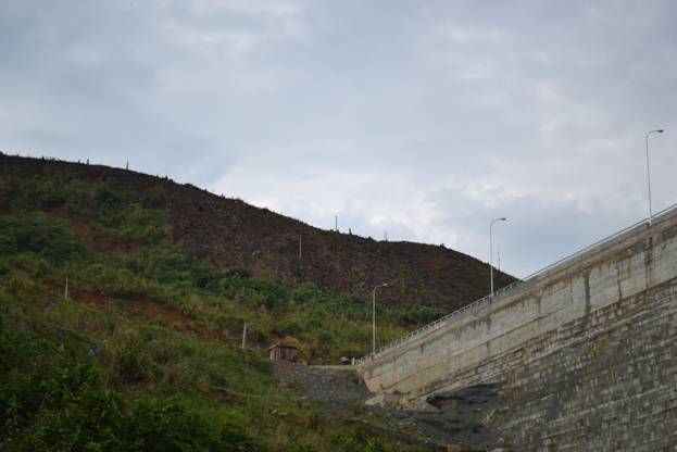 Nhiều cánh rừng chung quanh đập thuỷ điện Sông Tranh 2 đã bị “cạo trọc”, và vẫn còn trơ trọi sau nhiều năm kể từ khi khai hoang. Hình 5: Thuỷ điện Sông Tranh 2 ở Quảng Nam (Ảnh: Lê Anh Tuấn, 2012)