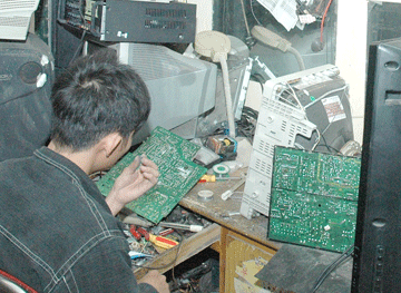 | Hằng năm có hàng tấn rác điện tử như tivi, đầu đĩa, máy tính được thải bỏ… rất lãng phí (ảnh Liên Cơ) |