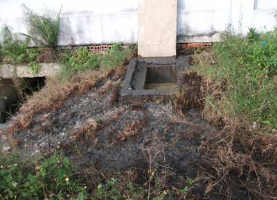 Tại hiện trường, khuôn viên cơ sở do ông Phạm Văn Tôn làm chủ có diện tích khoảng 2.500m2 với ba lò nấu, công suất 40 thỏi/lò/ngày. Toàn bộ xỉ thải từ quy trình nấu tái chế nhôm được tuồn thẳng ra con kênh nội đồng sát bên nhà xưởng, nhiều đoạn kênh bị lấp kín, xỉ chất cao thành đống. Bụi, khí thải từ các lò nấu nhôm xả trực tiếp ra môi trường mà không qua bất cứ công đoạn xử lý nào.