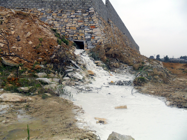 Tại khu vực xóm Mới có khoảng 12-15 xưởng chế biến đá trắng kiểu này nhưng tất cả đều không có hệ thống bể lắng lọc nước thải (hoặc có cũng như không). Và, cứ thế, hàng ngày các đơn vị này xả xuống sông Dinh hàng chục nghìn m3 nước thải độc hại.