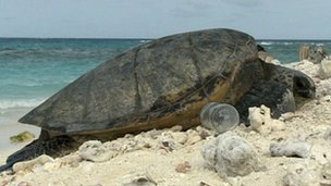 Rùa đẻ trứng giữa đống rác thải