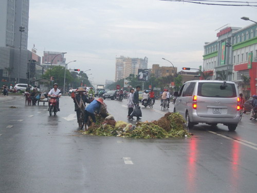 (08:00:36 AM 08/11/2012)Giữa ban ngày, dân vô tư xả rác thải ra đường dẫn vào chợ Vinh, tỉnh Nghệ An