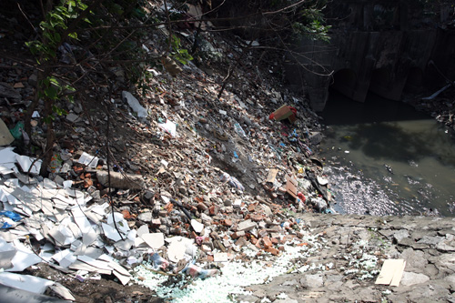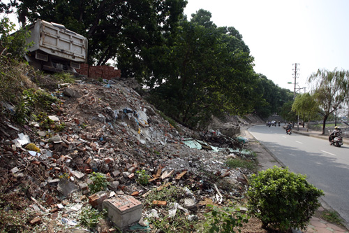 Theo lời một cán bộ sở Tài nguyên và Môi trường Hà Nội, tình trạng đổ phế thải dọc sông Tô Lịch ngày càng nhiều, gây mất mỹ quan đô thị và làm ảnh hưởng đến đê kè.