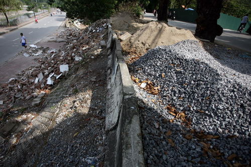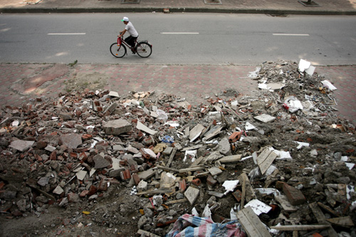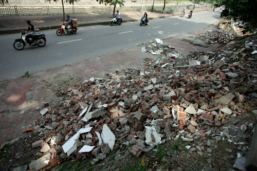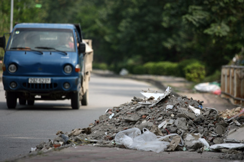 Phế thải vật liệu xây dựng đổ xuống vỉa hè thành từng đống lớn.