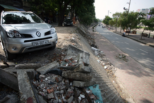 Hay trở thành bãi gửi xe ô tô, nhiều đoạn đê kè cũng bị sạt lở do sự tác động của con người.