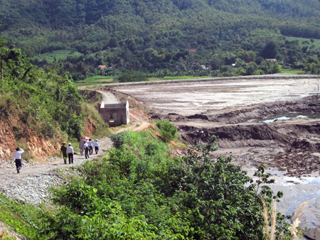 | Hồ chứa bùn tuyển quặng sắt đang là nguy cơ thảm họa thiên tai tại huyện Tuy An. |