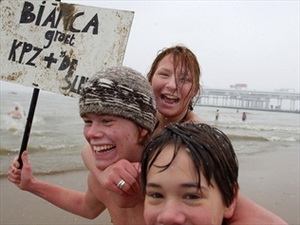Tại Scheveningen, một quận nghỉ dưỡng cao cấp của The Hague và là địa điểm chính/102 địa điểm ghi kỷ lục trên toàn quốc, nhiều người đi tắm vẫn đội mũ Giáng Sinh và mặc đồ bơi thể thao có màu cam đại diện cho đất nước khi họ hò hét và cười đùa trong lúc chạy xuống biển, trong điều kiện nhiệt độ rất lạnh.