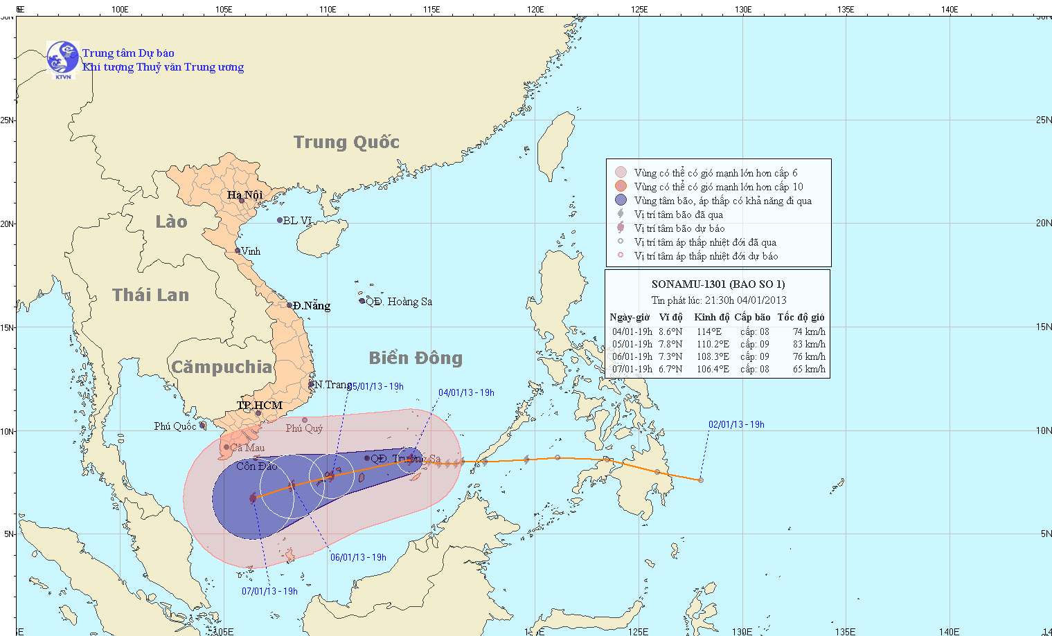 Bão số 1 là cơn bão đầu năm nhưng đến sớm và trái với quy luật. Theo dự báo, cơn bão này sẽ không ảnh hưởng trực tiếp đến đất liền Việt Nam nhưng sẽ quét dọc theo Quần đảo Trường Sa làm ảnh hưởng tới hơn 50.000 tàu, thuyền và hơn 80.000 người.