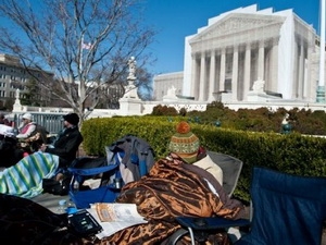 Hàng dài người xếp hàng ngoài trụ sở Tòa án Tối cao Mỹ không phải điều lạ thường nhưng xếp hàng trước bốn ngày là điều bất ngờ.