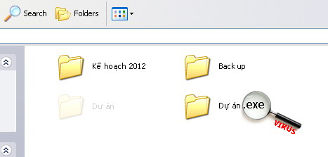 File thực thi virus cố tình sử dụng biểu tượng thư mục để đánh lừa người dùng