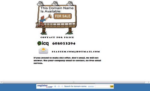 Với diadiem.com thì khác, sau khi kiểm soát, hacker đã lập tức rao bán trên chính website này. Thậm chí, hacker còn để lại liên hệ một cách cụ thể qua địa chỉ icq và email diadiem.com@hotmail.com.