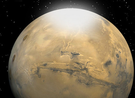 | Phi thuyền Mars Reconnaissance Orbiter, đang bay quanh sao Hỏa, phát hiện tuyết rơi ở cực nam của hành tinh đỏ. Ảnh: NASA. |