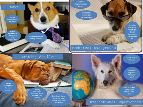 Huyền chia sẻ đó chỉ là slide thử nghiệm đưa lên để bạn bè tham khảo vì cô nghĩ rằng CV toàn chữ là chữ sẽ khiến nhà tuyển dụng mệt nếu phải đọc nhiều CV.