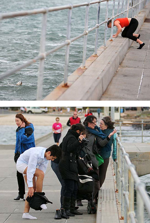Trong khi những người khác đang bối rối đứng nhìn thì có một chàng trai nhanh chóng cởi đồ và nhảy xuống.