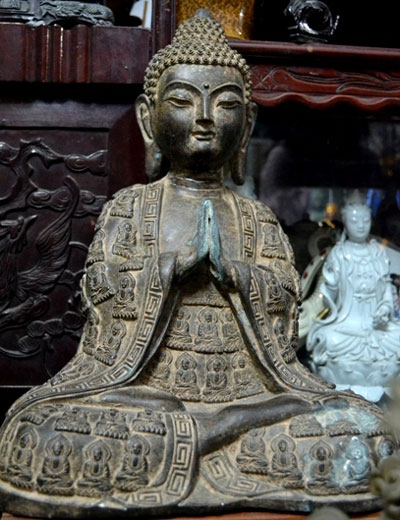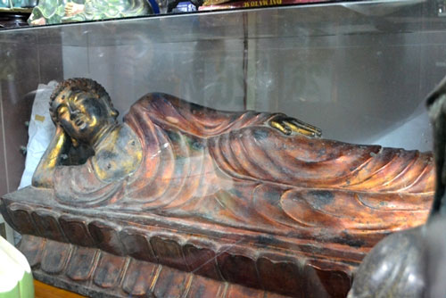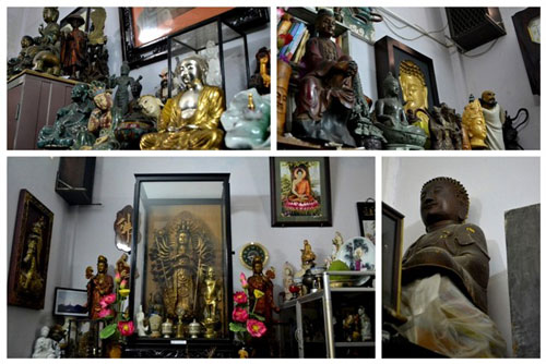 Do căn phòng chật hẹp nên nhiều tượng Phật cổ được sắp xếp khắp nơi trong phòng nhưng vẫn trang nghiêm.