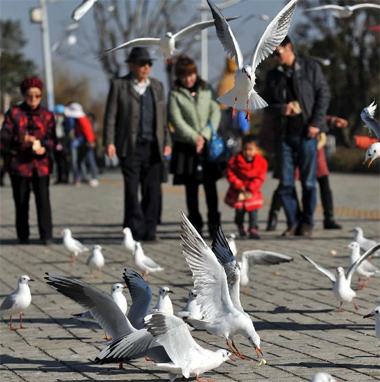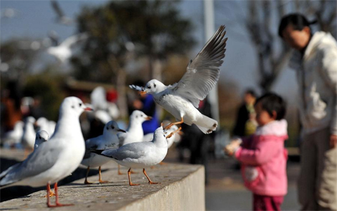 | Các nhà khoa học cho rằng mòng biển đầu đen trú đông tại hồ Điền Trì do điều kiện sinh thái thuận lợi trong thành phố Côn Minh. |