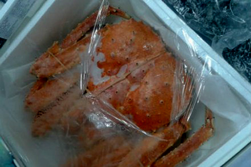 | Cua hoàng đế bán tại siêu thị ở Hà Nội là giống nhập ngoại, có cân nặng phổ biến hơn 2 kg/con và giá bán khoảng trên dưới 5 triệu đồng. |