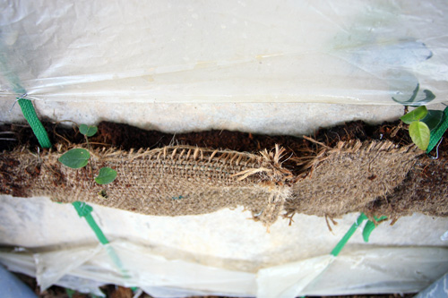 | Được trồng trên những lớp mùn cưa quấn quanh trụ cầu. |
