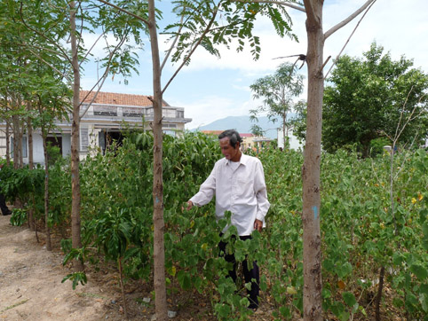 Thầy thuốc Lương Nhĩ đang chăm vườn thuốc Nam với nhiều loại cây như nhàu, giần sây, so đũa, chùm ngây…