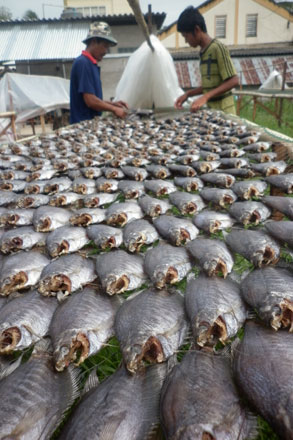 | Mùa làm cá khô trẻ em, phụ nữ, người già đều rất vui bởi họ có việc làm thêm sau khi thu hoạch lúa. Ảnh: Nhật Hồ |