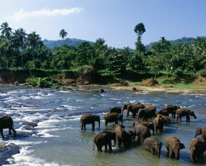 Voi đang uống nước tại khu bảo tồn Pinnawala