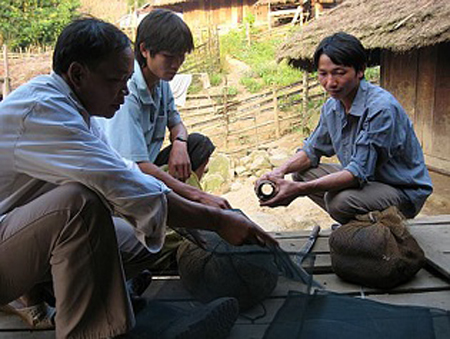 5 giờ sáng, khi những lớp sương trắng bạc vẫn còn giăng đầy trên những nóc nhà thì cũng là lúc các thợ săn lục đục vào rừng. Để tới được nơi đã được xác định từ trước, chúng tôi phải mất gần 2 giờ đồng hồ vượt qua những đoạn đường lổn nhổn đá cùng những chú vắt đói ăn vừa thức giấc bởi hơi người. Đội thợ săn đi đến đâu, một con đường mới lại được mở ra với những nhát dao phát đường sắc lẹm...