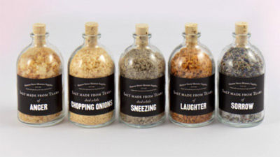 Một phát ngôn viên của công ty cho biết, sản phẩm muối làm từ nước mắt có nhiều vị khác nhau, bao gồm vị của nước mắt buồn phiền, nước mắt khi cười, nước mắt khi giận dữ và thậm chí nước mắt khi bị hắt hơi, nước mắt khi thái hành,...
