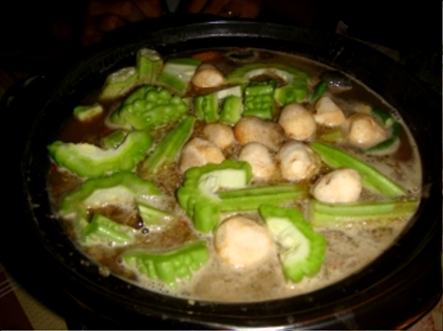Cho nước vào nấu sôi, cho cà tím vào, nêm gia vị cho vừa ăn. Cuối cùng là cho tất cả tôm, mực, nấm, đậu... vào nấu vừa chín nếu múc ra tô. Nếu dùng lẩu thì bày rau và nấm, mực ra đĩa riêng.