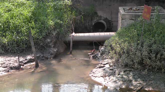 | Các nhà máy xả thải chui vào ban đêm để qua mắt cơ quan chức năng và người dân qua các ống xả thải nhỏ - Ảnh: Huệ Bạch |