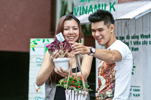 Chỉ với hóa đơn mua sản phẩm Vfresh bất kỳ từ 100.000 đồng trở lên, bạn sẽ được tặng ngay một chậu cây xinh xắn ngay tại gian hàng Vfresh. Không chỉ vậy, bạn còn đóng góp góp 50 đồng vào Quỹ 1 triệu cây xanh cho Việt Nam cho mỗi sản phẩm tốt cho sức khỏe mà mình lựa chọn. Tất cả sản phẩm Vfresh đều được chế biến từ nguồn nguyên liệu tự nhiên, không chất bảo quản, đa dạng chủng loại, từ dòng Vfresh Nha Đam với hai hương vị trà và nho, nước trái cây với đủ các loại trái (cam, táo, nho, ổi, đào, cà chua) cho đến trà atiso, sữa đậu nành giàu đạm.