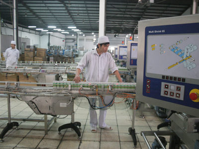 | Dây chuyền sản xuất sữa của Công ty CP Giống bò sữa Mộc Châu. |