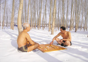 (10:52:15 AM 20/01/2013)Màn trình diễn uống bia trên tuyết của vua băng Diên Cát đã khiến mọi người ngưỡng mộ. Hai ông già lục tuần ở Tùng Nguyên, Trung Quốc cũng tỏ ra không chịu thua kém, chỉ mặc độc chiếc quần đùi ngồi đánh cờ trên tuyết, chịu lạnh gần 30 phút, cảnh tượng cũng vô cùng bắt mắt.