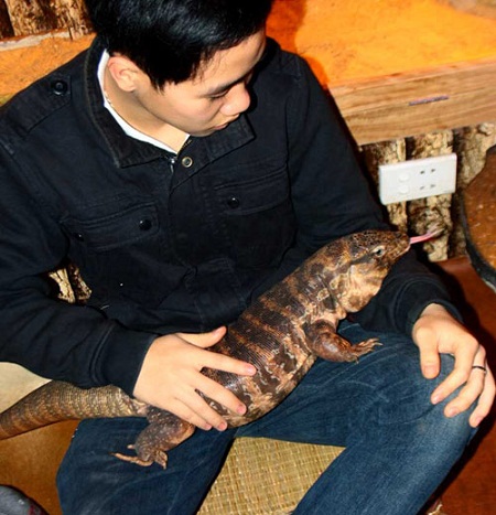 "Khác với các loại thú cưng khác như chó, mèo... các công đoạn chăm sóc rất phức tạp và tốn kém về tiền bạc lẫn thời gian của người nuôi. Loài rồng đất vốn là động vật hoang dã, có tính đề kháng cao nên rất "tự lập" - Trung Dũng nháy mắt tinh nghịch nói.