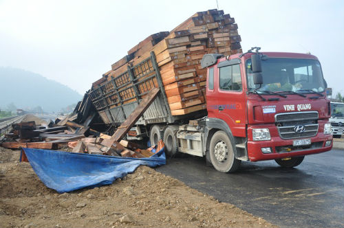 Tại hiện trường toàn bộ các lốp sau của xe bị nổ, số còn lại bốc cháy hoàn toàn. Hàng chục thớ gỗ loại dài hơn 2 mét bị cháy đen. Gỗ nằm ngổn ngang trên đường, trọng tải hàng chục tấn nên chiếc xe đầu kéo rơ mooc nghiêng hẳn sang đường tàu và phải dùng gỗ chống.