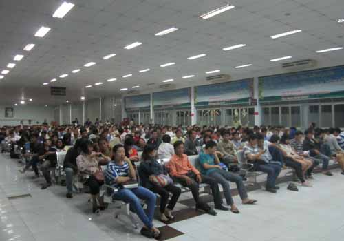 | Hành khách xếp hàng chờ lên quầy nhận số thứ tự. |
